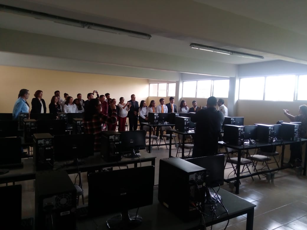 Xalapa, Ver., a 25 de febrero de 2019. En la Escuela Normal Superior Veracruzana (ENSV) Dr. Manuel Suárez Trujillo se llevó a cabo la inauguración de dos aulas ubicadas en el edificio H: la Sala de usos múltiples y el Centro de cómputo. Lo anterior fue posible gracias a un esfuerzo conjunto entre la ENSV y el Instituto Tecnológico Superior de Xalapa (ITSX). Los becarios del ITSX realizaron la instalación del cableado eléctrico y de comunicaciones para conectar los equipos a una red con velocidad de banda ancha, por disposición del gobierno federal, para alimentar adecuadamente a las 15 computadoras que forman parte del equipamiento de estas nuevas aulas.