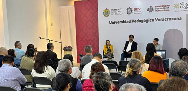 La Tercera Jornada Académica, en el marco del festejo por el 44 Aniversario de la UPV, dio inicio con la presentación del libro “Hacia la excelencia educativa: Análisis de la formación continua de las maestras y maestros de educación básica en servicio”. La obra, de la Dra. Elena del Rocío Manrique Bandala, fue presentada por la Mtra. Cristina Cuevas Gayosso, en conjunto con el Lic. Francisco Javier Sánchez Fajardo como moderador.